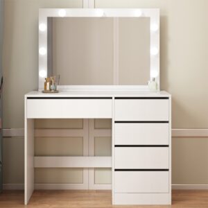 Dodaj do koszykaSzybki PodglądToaletkiKosmetyczny stolik do makijażu z lustrem LED, nowoczesny styl loftowy, 110 cm