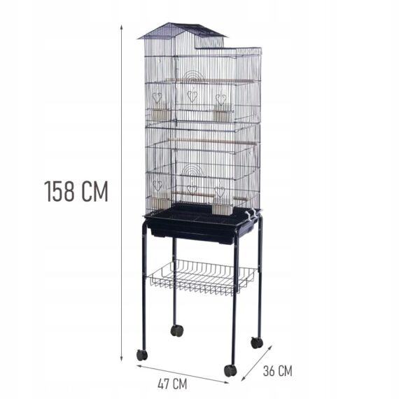 Klatka / woliera duża na kółkach dla papug, kanarków I ptaków egzotycznych – metalowa
