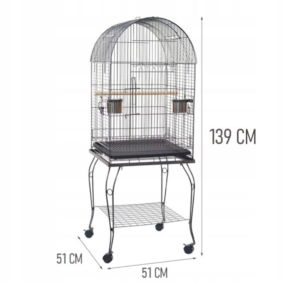 Duża, solidna klatka – woliera na kółkach, przeznaczona dla papug, kanarków oraz innych ptaków egzotycznych. Zapewnia komfortową przestrzeń do codziennego funkcjonowania, a mobilna konstrukcja umożliwia łatwe przestawianie w dowolne miejsce.