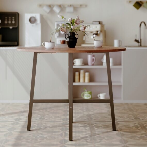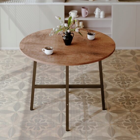 Stylowy stolik kawowy w industrialnym klimacie to idealne uzupełnienie salonu urządzonego w stylu loft, retro lub nowoczesnym. Okrągły blat w kolorze rustykalnego brązu nadaje wnętrzu ciepła, a metalowa konstrukcja podkreśla surowy charakter mebla.