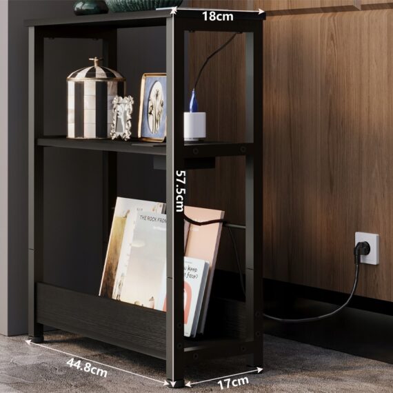 Szafka nocna / stolik nocny loft – czarna – z listwą zasilającą