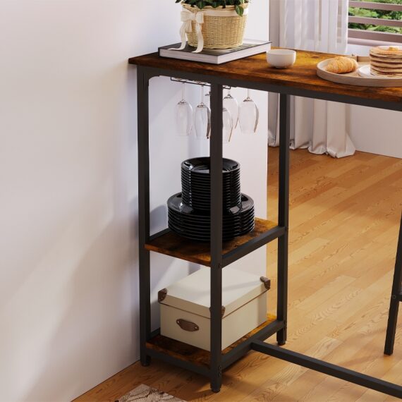 Stylowy I funkcjonalny zestaw barowy to idealne rozwiązanie do kuchni, jadalni, kawalerki czy aneksu kuchennego. Połączenie rustykalnego wykończenia z industrialnym designem nadaje wnętrzu wyjątkowego charakteru.