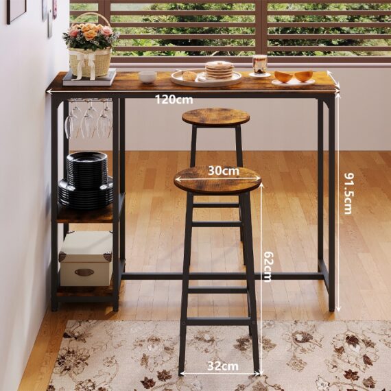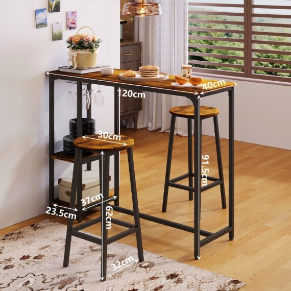 Zestaw stół I krzesła barowe, stół jadalniany z 2 stołkami rustykalny loft