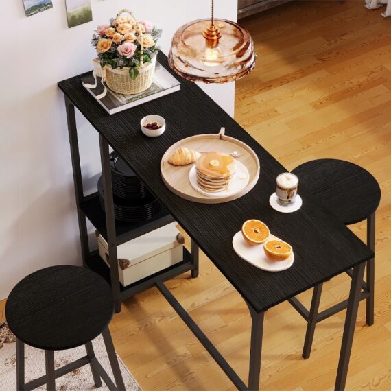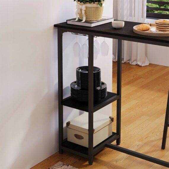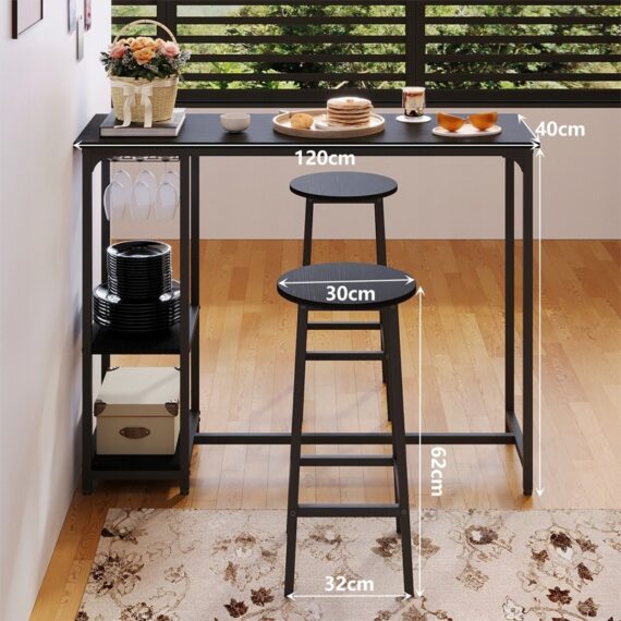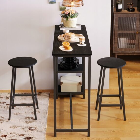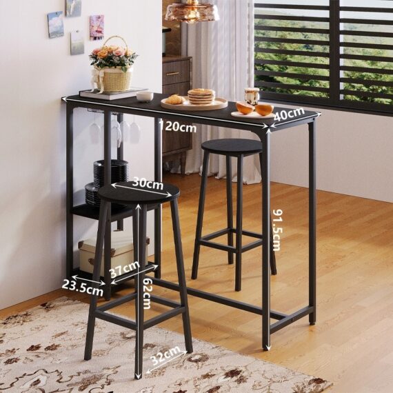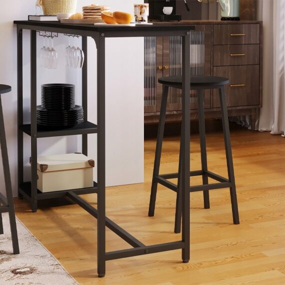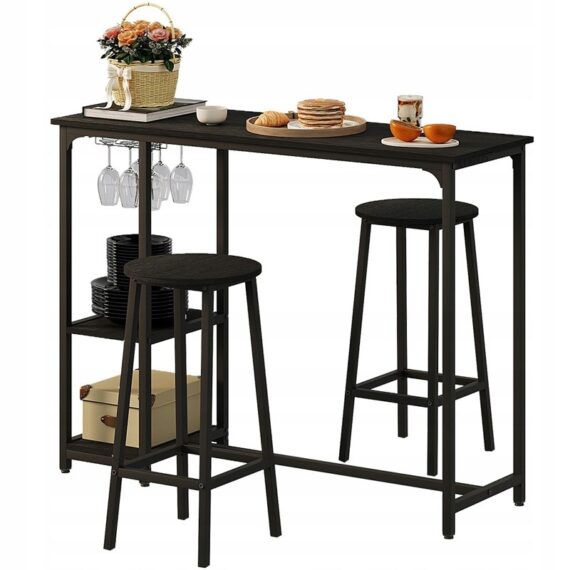 Zestaw barowy: stół + 2 krzesła (stołki) – czarny – styl loft / nowoczesny