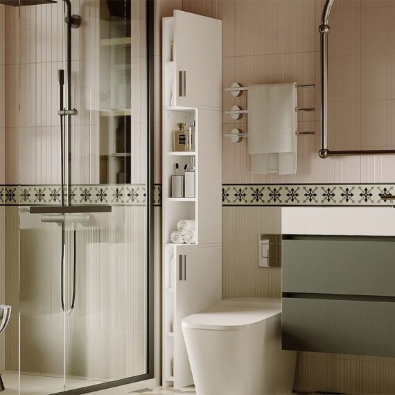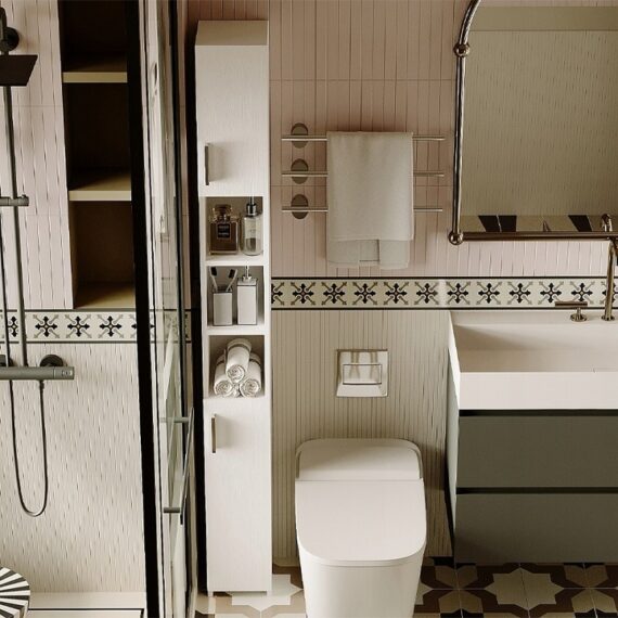 Funkcjonalny I nowoczesny słupek łazienkowy, idealny do przechowywania kosmetyków, detergentów I akcesoriów. Wysoka, smukła konstrukcja pozwala maksymalnie wykorzystać przestrzeń, a biały kolor w połączeniu z prostym loftowym designem pasuje do każdej łazienki.
