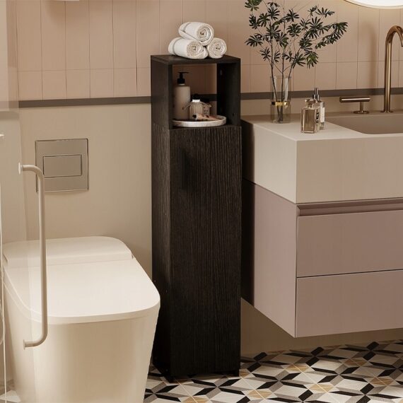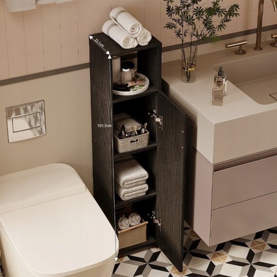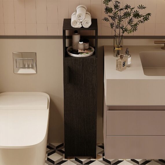 Nowoczesna I praktyczna szafka łazienkowa typu słupek w kolorze czarnym to idealne rozwiązanie do małych I średnich łazienek. Smukła konstrukcja pozwala maksymalnie wykorzystać przestrzeń, zapewniając jednocześnie wygodne przechowywanie.