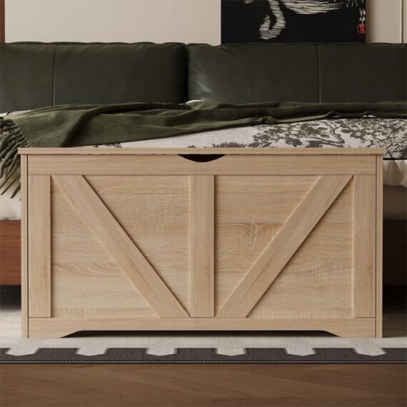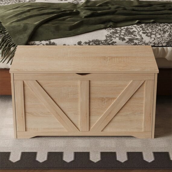 Drewniana duża skrzynia do przechowywania – jasny brąz – ławka