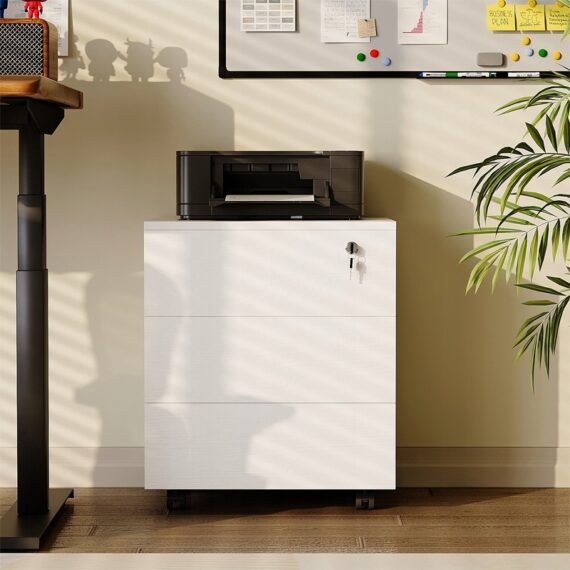 Kontenerek biurowy na kółkach z szufladami na kluczyk mobilna szafka biała