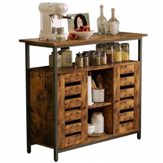 Napisz pierwszą opinię o „Kredens szafka boczna z otwartymi półkami komoda brązowa kuchnia retro loft”