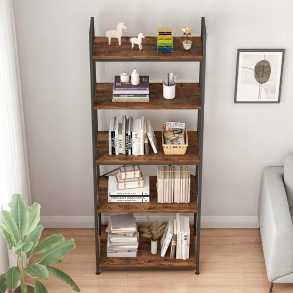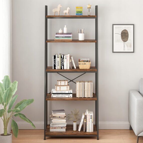- Pięć przestronnych półek zapewnia dużo miejsca do przechowywania książek, dekoracji, roślin doniczkowych czy innych przedmiotów codziennego użytku.