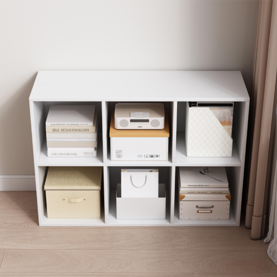 Regał Otwarty KALAX Komoda Kostka 2×3 Biały – Nowoczesne Rozwiązanie do Twojego Wnętrza