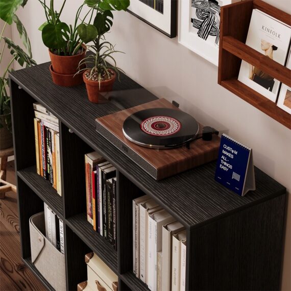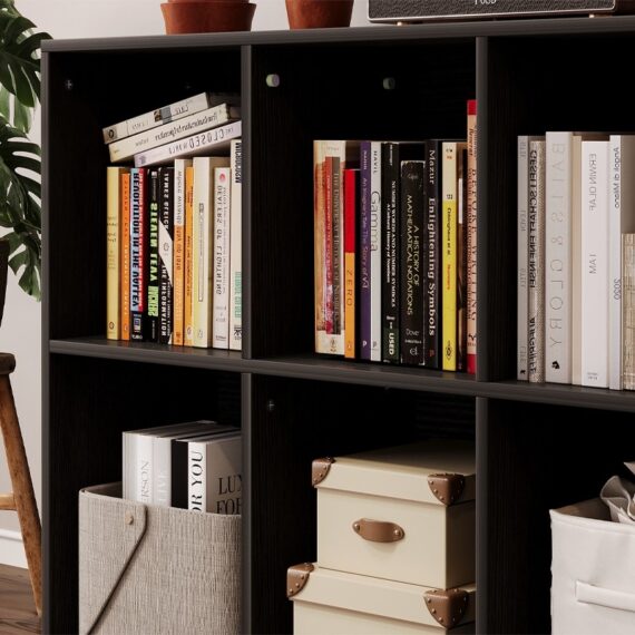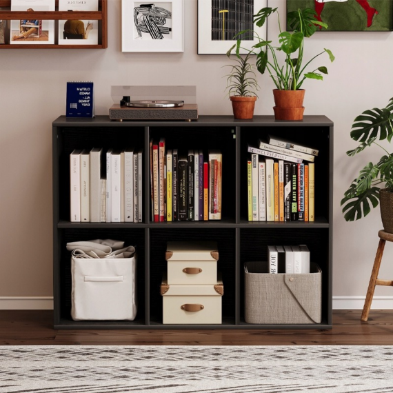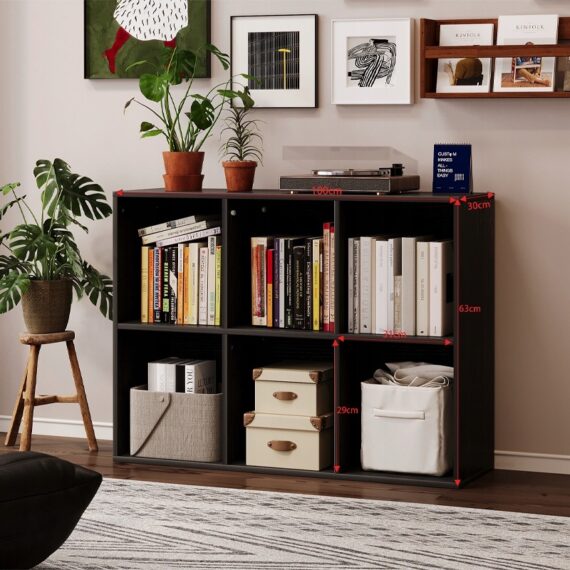 Nowoczesny I pojemny regał w stylu loftowym, idealny do biura, salonu lub pokoju młodzieżowego. Konstrukcja 3×2 zapewnia funkcjonalne przechowywanie I łatwy dostęp do zawartości, a czarna kolorystyka podkreśla industrialny charakter wnętrza.