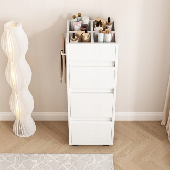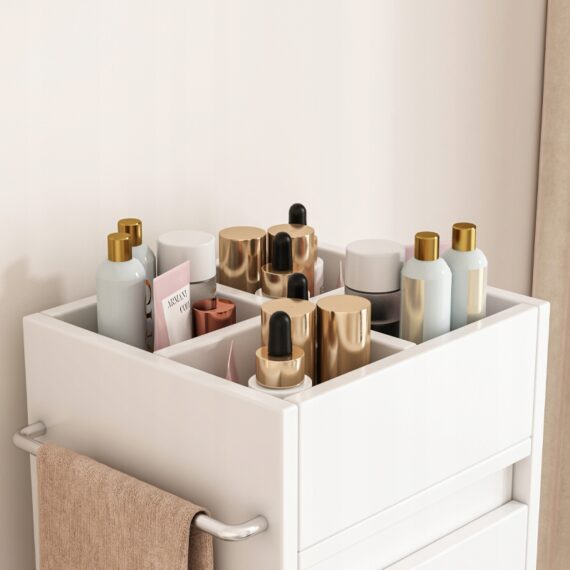 - Funkcjonalność: idealna do przechowywania kosmetyków, ręczników, środków czystości i innych łazienkowych akcesoriów