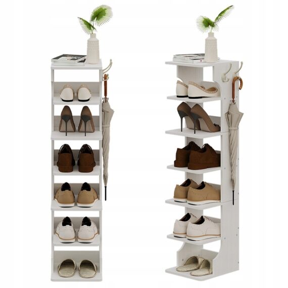 Szafka na buty funkcjonalna wąska biała regał półka 6 poziomów 2 haki 112cm