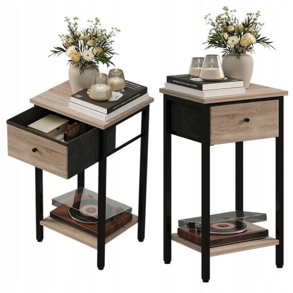 Funkcjonalny I stylowy stolik nocny w industrialnym stylu to praktyczne uzupełnienie sypialni, salonu lub biura. Połączenie jasnobrązowego blatu z metalową konstrukcją nadaje meblowi nowoczesny, loftowy charakter, a kompaktowy rozmiar sprawia, że świetnie sprawdzi się także w mniejszych przestrzeniach.
