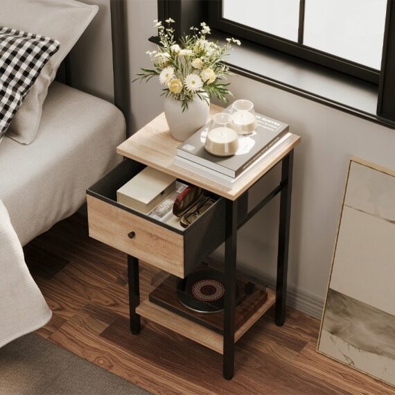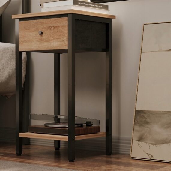 Stolik nocny / komoda / szafka z szufladą I półką – jasny brąz, loft, industrialny