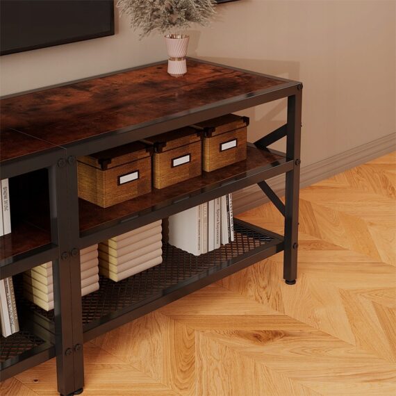 Stylowa I funkcjonalna szafka rtv w kolorze rustykalnego brązu to idealny wybór do nowoczesnych I klasycznych wnętrz. Połączenie estetyki vintage z praktycznym układem półek sprawia, że mebel świetnie sprawdzi się w salonie jako centrum strefy multimedialnej.